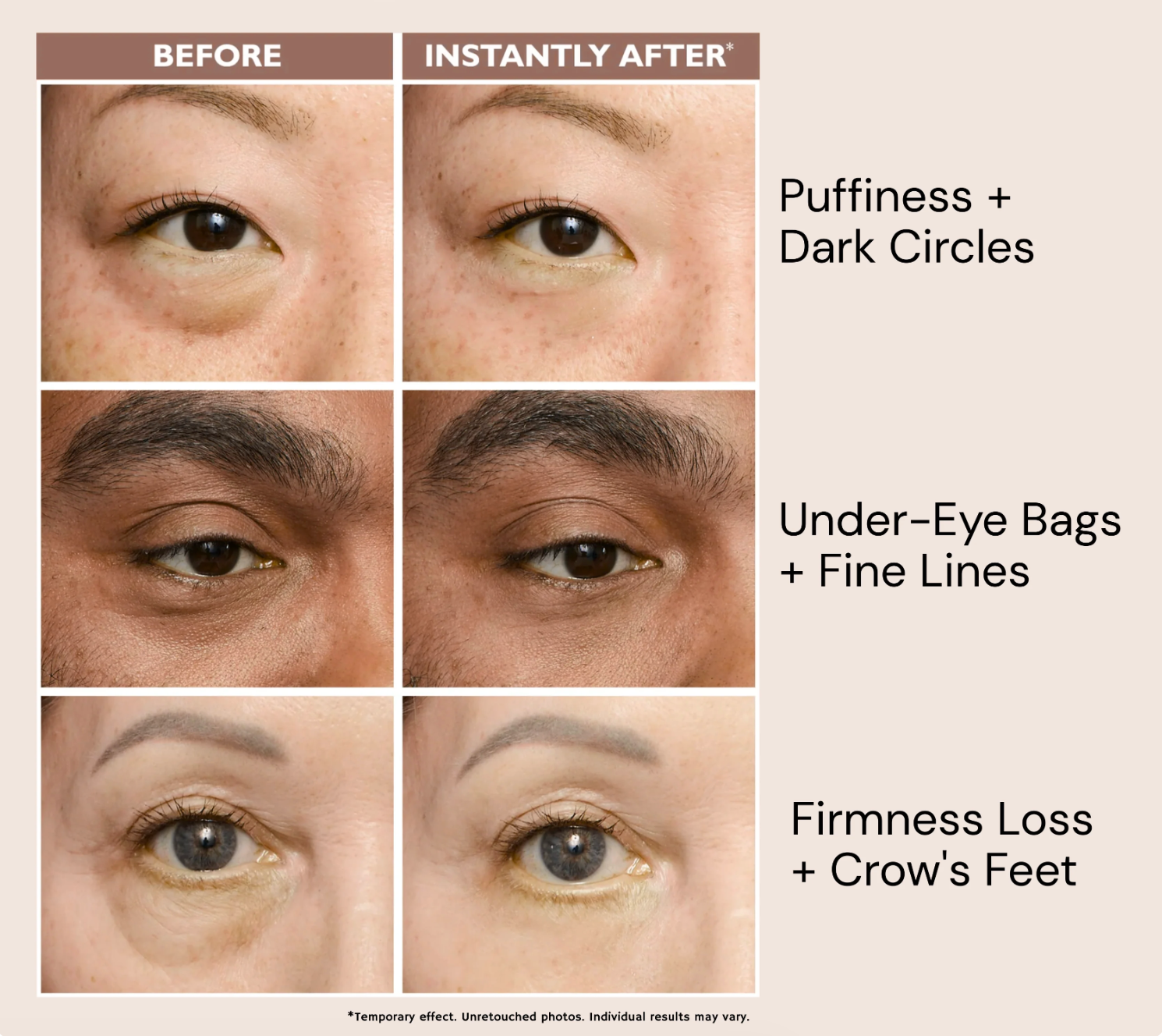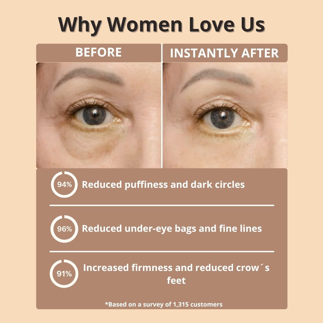 You’ll notice a visible difference in just 60 seconds — smoother texture, reduced puffiness, and a lifted, more refreshed look that lasts up to 8 hours.